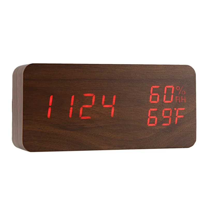 HIGH QUALITY Modern Led Alarm Clock Temperature Humidity Electronic Desktop Digital Table ClocksBrown + red subt