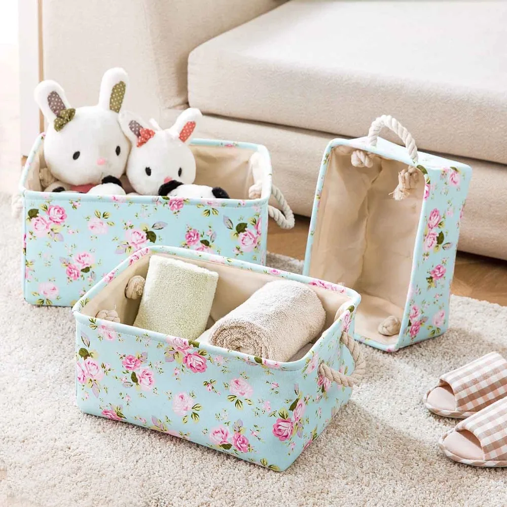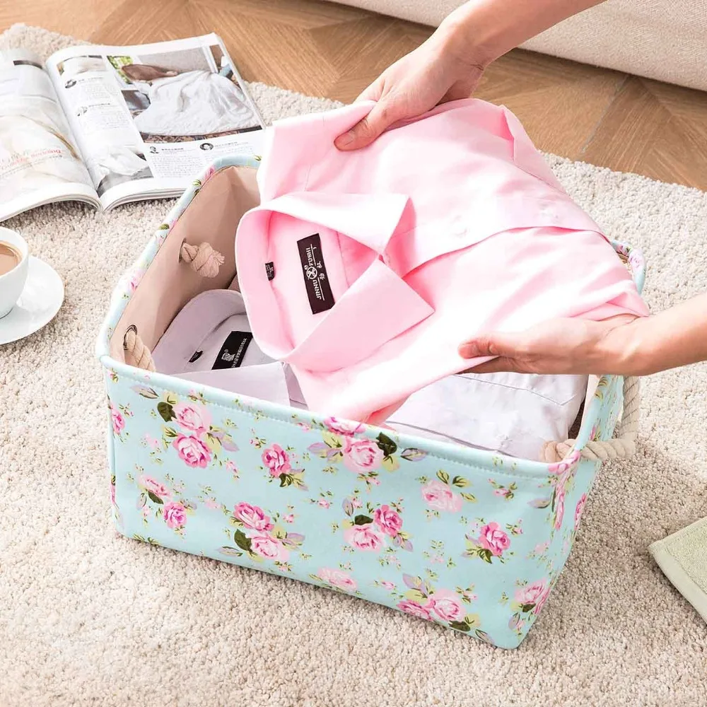 HOT SALE 1pc Foldable Cloth Collection Basket Fresh Floral Storage Box Waterproof Desktop Wardrobe Sundries