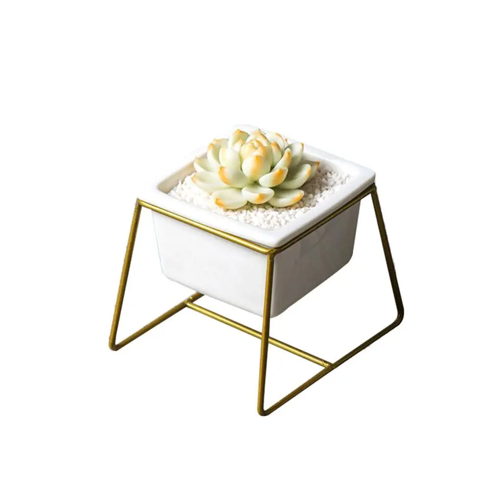 Simple Iron Arched Stand Ceramic Succulent Green Plant Round Pot Ceramic Pot Iron Stand Set Flower