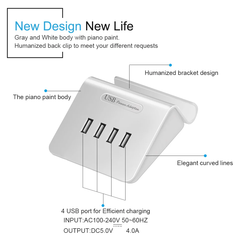 US Plug 4 Ports Universal USB Travel Charger Desktop Wall Charger Adapter Charging Station for Ipho