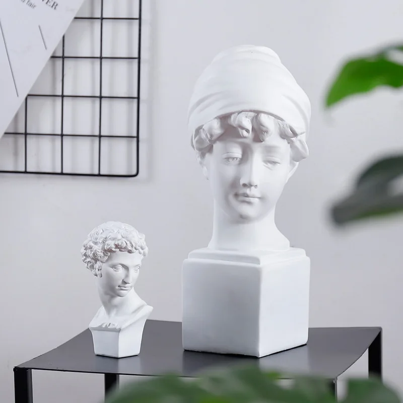 TOP Classic White Resin King David Bust Head Statue Sculpture Venus Figurines Miniatures Ornaments Desk