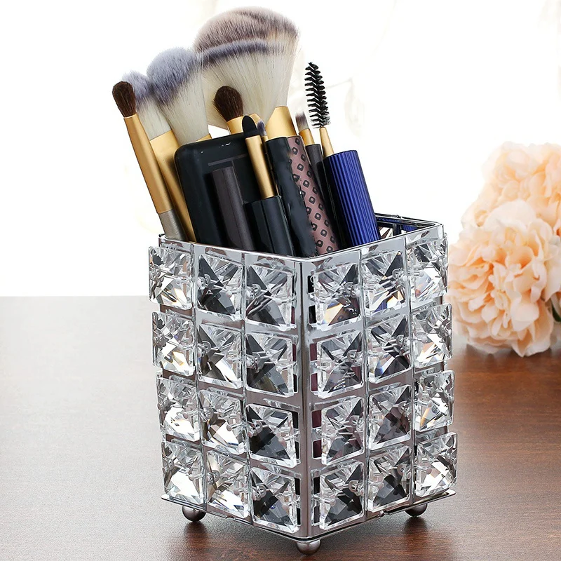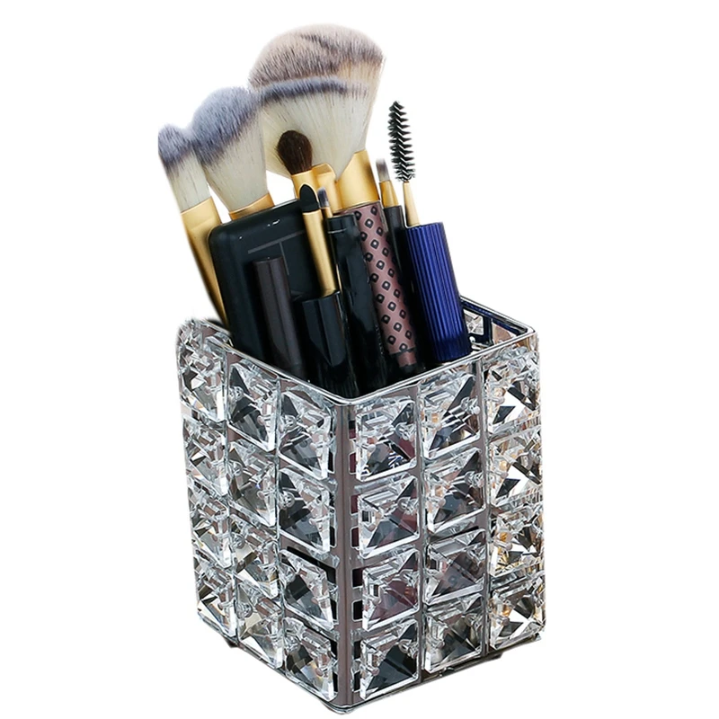 Metal Crystal Square Makeup Organizer Box Brush Sorting Storage Tube Sorting Jewelry Desktop Decora