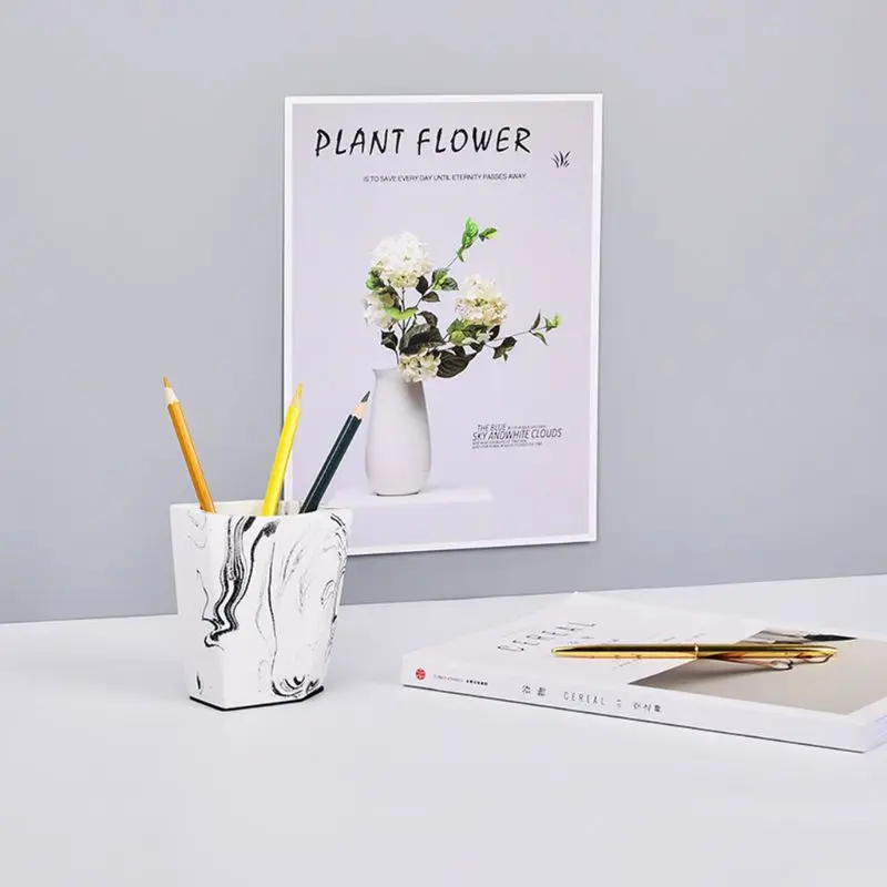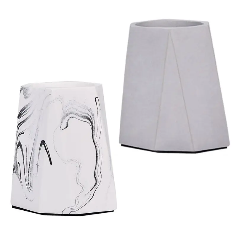 HIGH QUALITY Geometric Cement Pen Container Concrete Flower Pot Pencil Brushes Storage Desktop Organizer Station