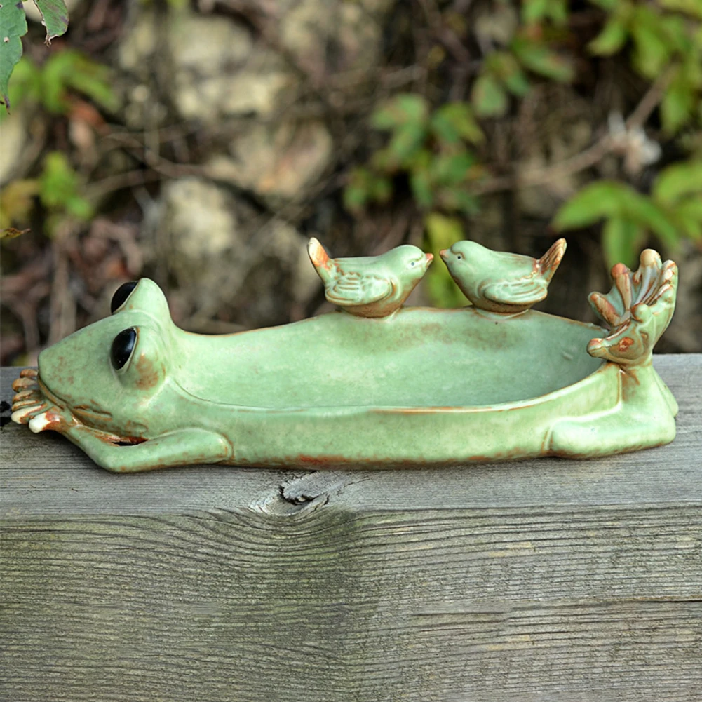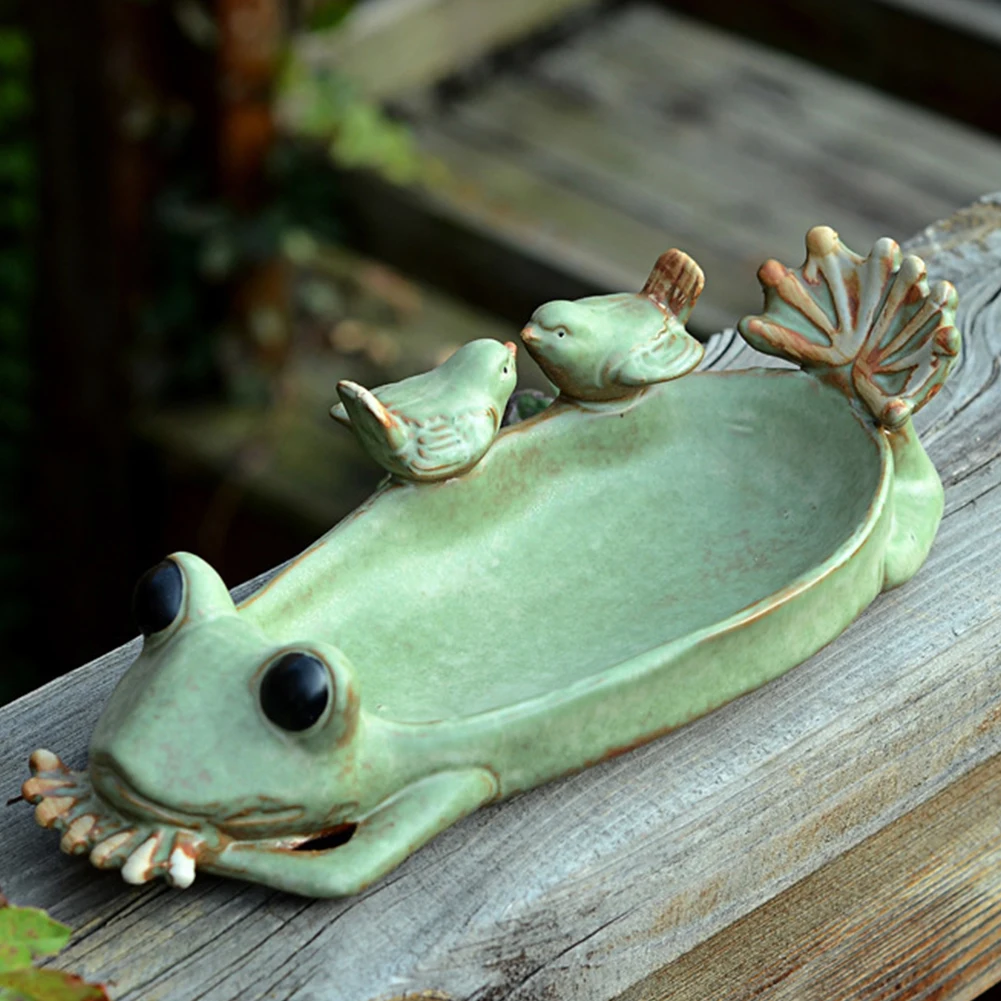 Retro Frogs Shape bowl lotus planter frog and two birds hydroponic plants flowerpot Succulent ceram